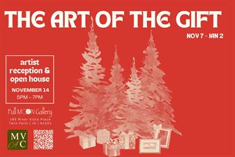 The Magic Valley Arts Council invites you to the Artist Reception of Art of the Gift from 5-7 pm on Friday, November 14 at the Full Moon Gallery of Fine Art and Contemporary Craft, 195 River Vista Place. This free event features works by 35 local artists, light refreshments and lively conversation.